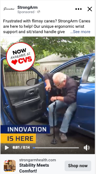 A good example of this came from our work with StrongArm. Early tests showed that ads featuring a clear, immediate demo of someone pulling themselves up from a chair consistently outperformed other visuals. That single moment communicated the product’s value instantly and stopped people mid-scroll.